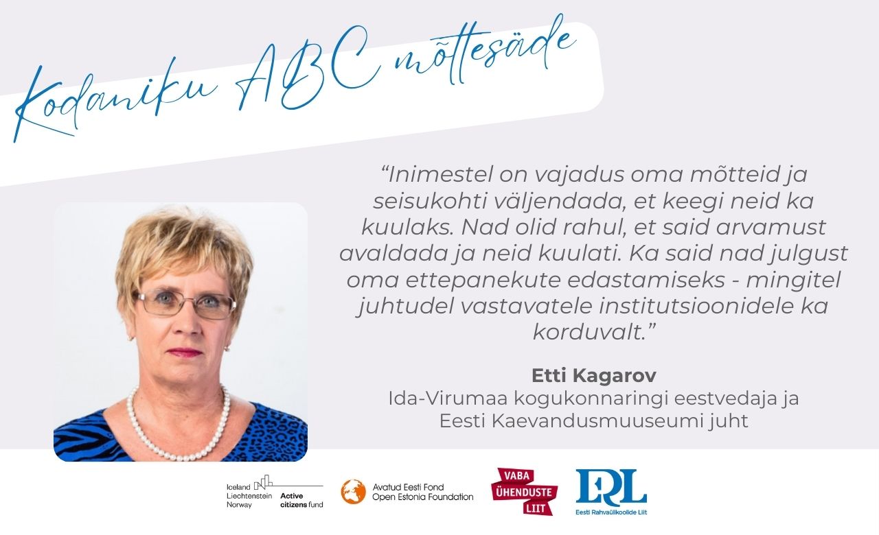👩💻 “Inimesed olid rahul, et nad said arvamust avaldada ja neid kuulati,” ütleb Ida-Virumaa kogukonnaringi eestvedaja, Kohtla-Nõmmel asuva Eesti kaevandusmuuseumi juht Etti Kagarov, mida ta ise peab sealse õpiringi suurimaks kordaminekuks. Ta märgib, et see andis osalejatele ka julguse esitada oma ettepanekuid erinevatele ametiasutustele ning seda vajaduse korral ka korduvalt teha.