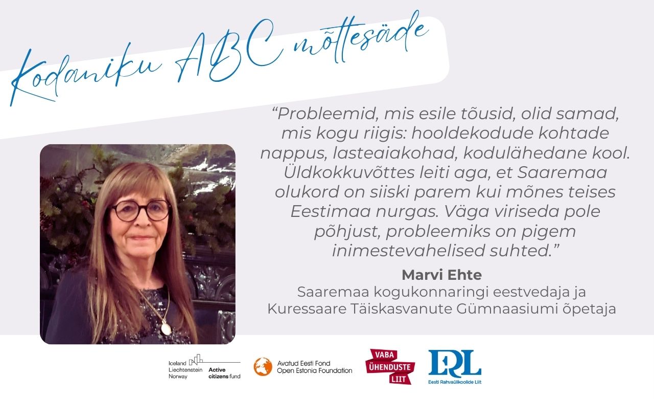 💡 “Probleemid, mis esile tõusid, olid ilmsed samad, mis kogu riigis: hooldekodude kohtade nappus, lasteaiakohad, kodulähedane kool. Aga üldkokkuvõttes leiti, et Saaremaa olukord on siiski parem kui nii mõneski teises Eestimaa nurgas. Väga viriseda pole põhjust, probleemiks on pigem inimestevahelised suhted,” ütleb Marvi, kirjeldades õpiringi ühte suurimat õpikogemust.